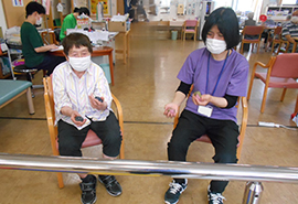 リハビリ専門職による個別機能訓練や集団体操、マシーンによる筋力トレーニングなどを行い、楽しく体を動かしながら心身機能の維持向上をご利用者様と一緒に取り組ませていただきます。ご利用者様の「楽しみ」の一つとなるような機能訓練ができるように頑張ります。