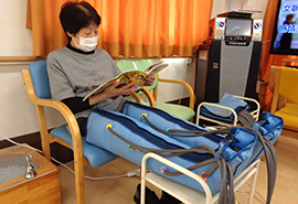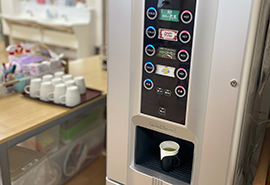 ご利用者さまおひとりおひとりが、日中フロアでゆったりとした癒しの空間で、居心地よくお過ごしていただきます。また、ドリンクサーバーをご利用していただいたり、リラクゼーション機器を楽しんでいただいたり、くつろぐ時間もお過ごしいただけます。