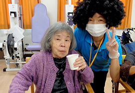 リハビリ専門職による個別機能訓練や集団体操、マシーンによる筋力トレーニングなどを行い、楽しく体を動かしながら心身機能の維持向上をご利用者様と一緒に取り組ませていただきます。ご利用者様の「楽しみ」の一つとなるような機能訓練ができるように頑張ります。