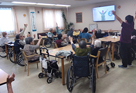 リハビリ専門職による個別機能訓練や集団体操を行い、楽しく体を動かしながら心身機能の維持向上をご利用者様と一緒に取り組ませていただきます。ご利用者様の「楽しみ」の一つとなるような機能訓練の提供ができるように頑張ります。